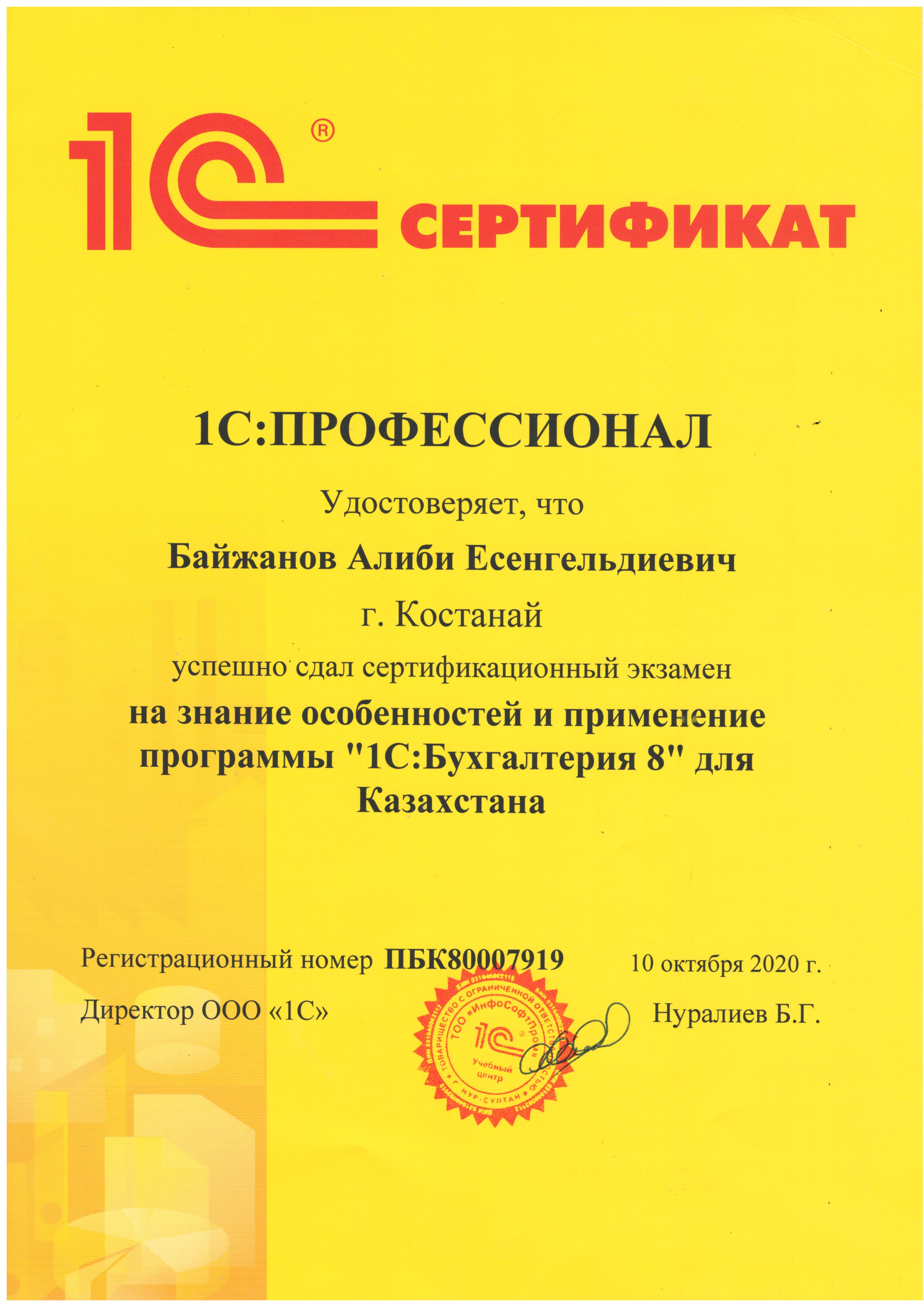 "1С:Бухгалтерия 8" для Казахстана - Байжанов Алиби