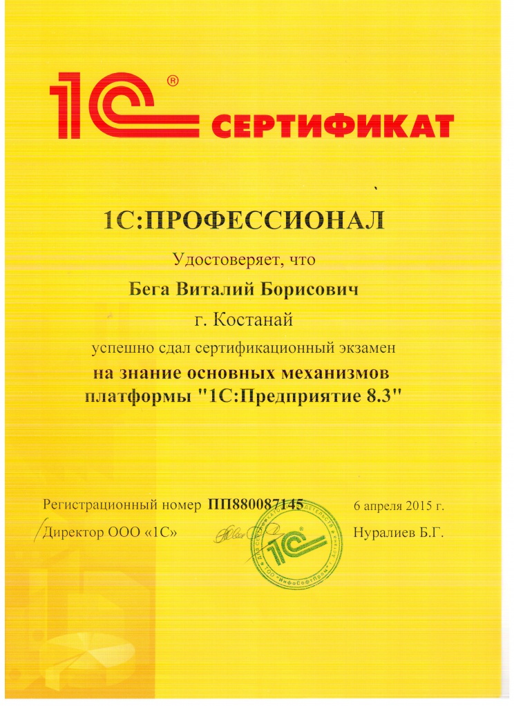 Платформа "1С:Предприятие 8.3", Бега Виталий