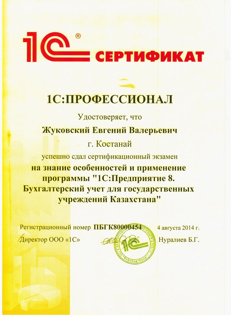 1С:Предприятие 8. Бухгалтерский учёт для государственных учреждений Казахстана, Жуковский Евгений