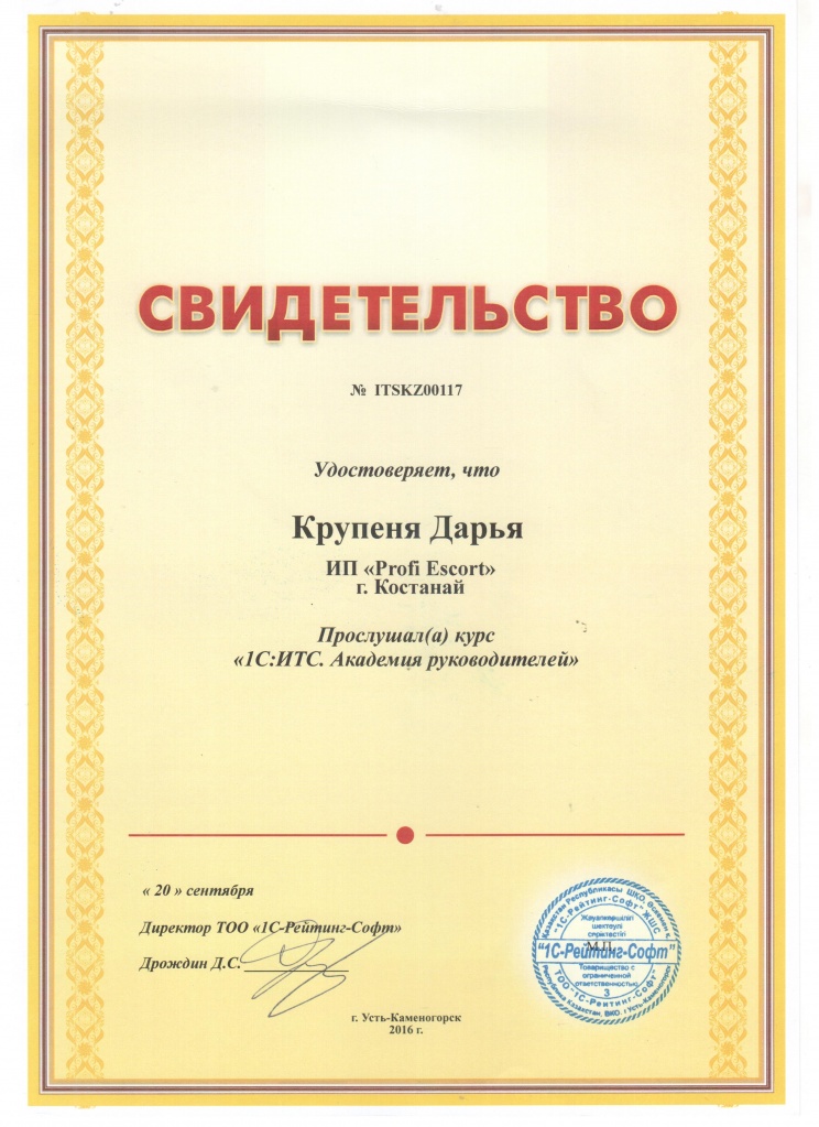 Курс "1С:ИТС. Академия Руководителей", Крупеня Дарья