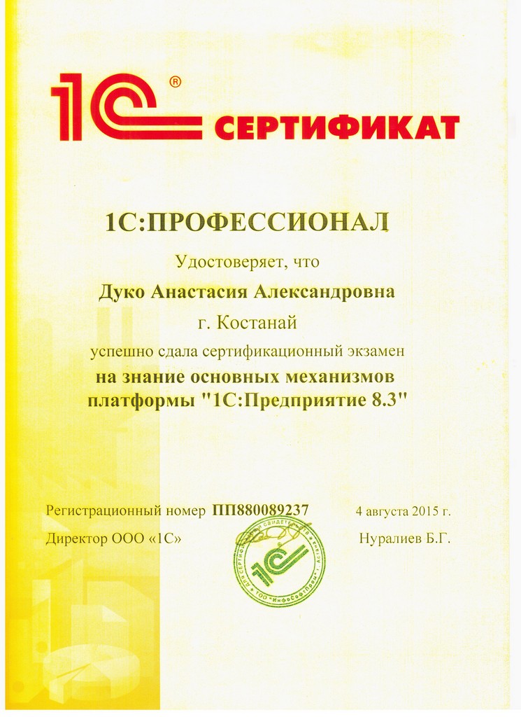 Платформа "1С:Предприятие 8.3", Дуко Анастасия