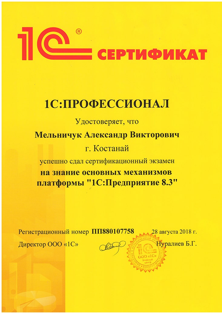 Платформа "1С:Предприятие 8.3", Мельничук Александр
