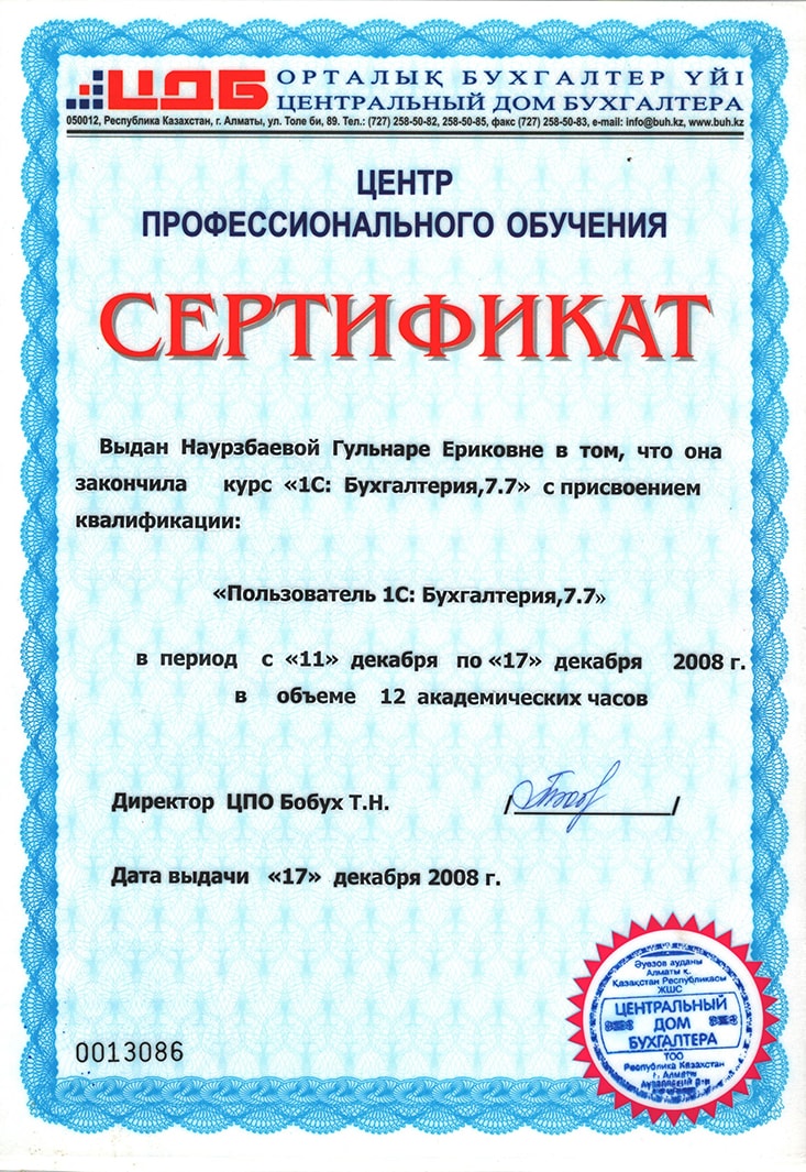 Пользователь "1С:Бухгалтерия 7.7", Наурзбаева Гульнура