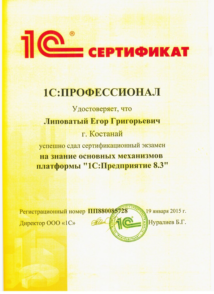Платформа "1С:Предприятие 8.3", Липоватый Егор