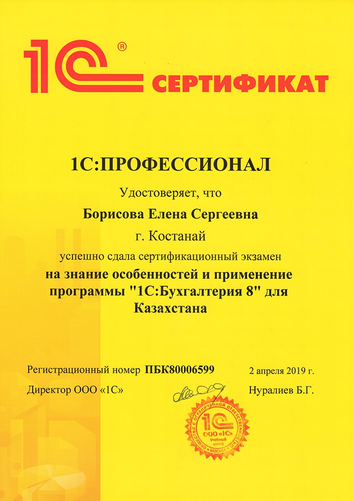 "1С:Бухгалтерия 8" для Казахстана, Борисова Елена