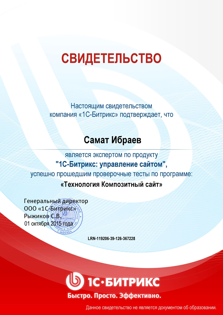 1С-Битрикс - "Разработчик Bitrix Framework", Ибраев Самат