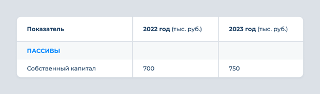Собственный капитал увеличился на 50 тыс. руб. Это может быть результатом накопления прибыли или привлечения дополнительных инвестиций. Это положительный сигнал, указывающий на укрепление финансовой устойчивости компании.