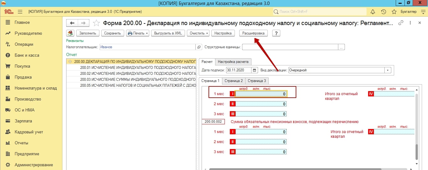 200 форма, Декларация по ИПН и СН, сдается предприятиями на общеустановленном режиме, один раз в квартал. В данной декларации показываются доходы работников и все возможные вычеты. Данные 200-ой формы, используют при сдаче 100 формы, сверяя начисленные суммы доходов, ОСМС и социального налога, которые, указываются в 100 форме как вычеты.