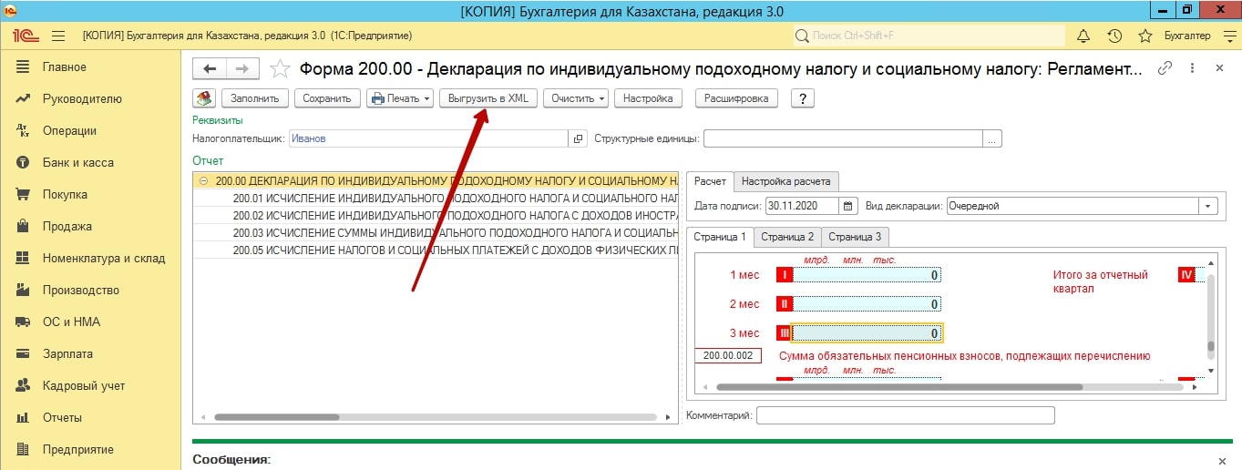 После заполнения формы, сохраняем и можем выгрузить ее в формате xml. Затем, подгрузить готовую форму в кабинет НК и отправить.