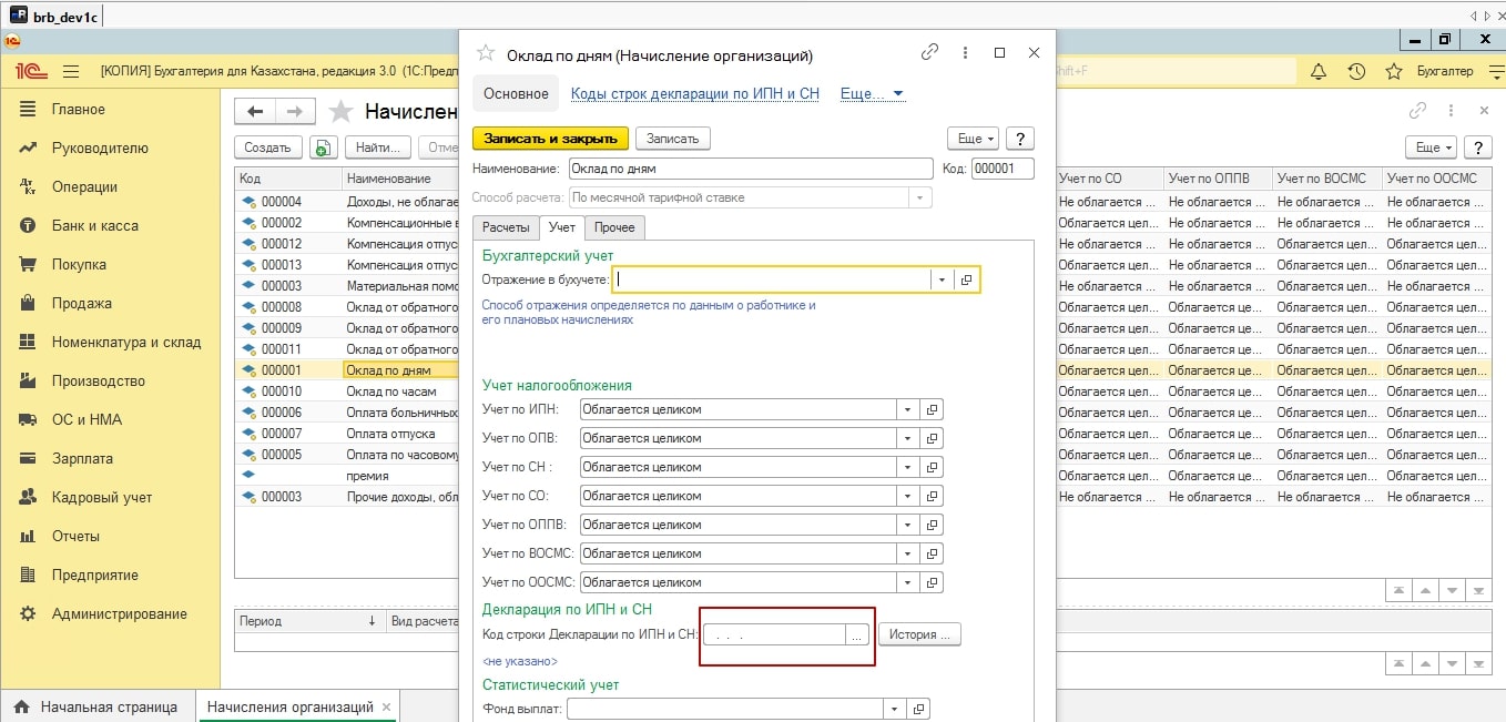 Для того, чтобы данные по начислениям попадали в 200 форму, в каждом из этих видов начислений, на вкладке учет, необходимо проставить в строке «Отражение в декларации», строку из классификатора 200 формы. Не забываем установить период, тот, за который мы хотим видеть данные в 200 формы, обновлять настройки строк необходимо каждый год. Так как формы налоговой отчетности меняются, классификаторы обновляются, строки тоже меняются, если будет установлена не актуальная строка для сбора данных, 200 форма к сожалению, не заполниться.