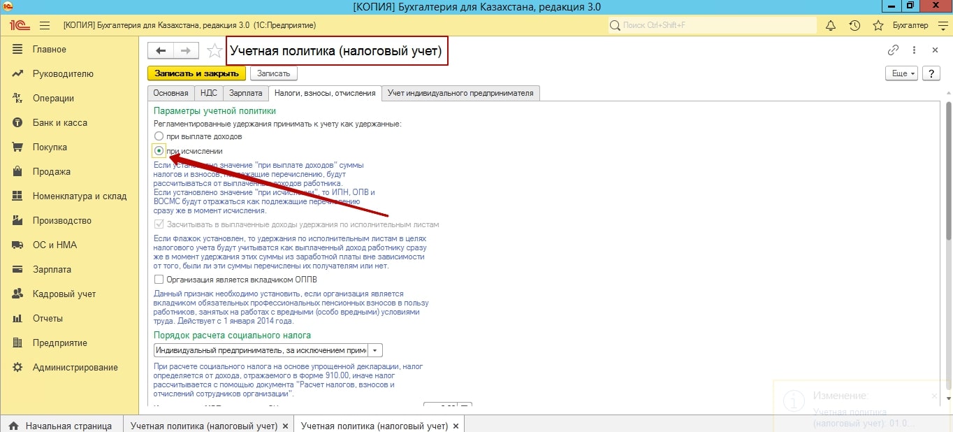 при выплате доходов, либо значение при исчислении. Если мы устанавливаем первое значение, то при заполнении 200 формы, исчисленный ИПН, ОПВ, на первой странице 200 формы, может быть равен 0, то есть пустые значения. Это происходит потому, что, значение будут проставляться от выплаченных доходов, а не от исчисленных.
