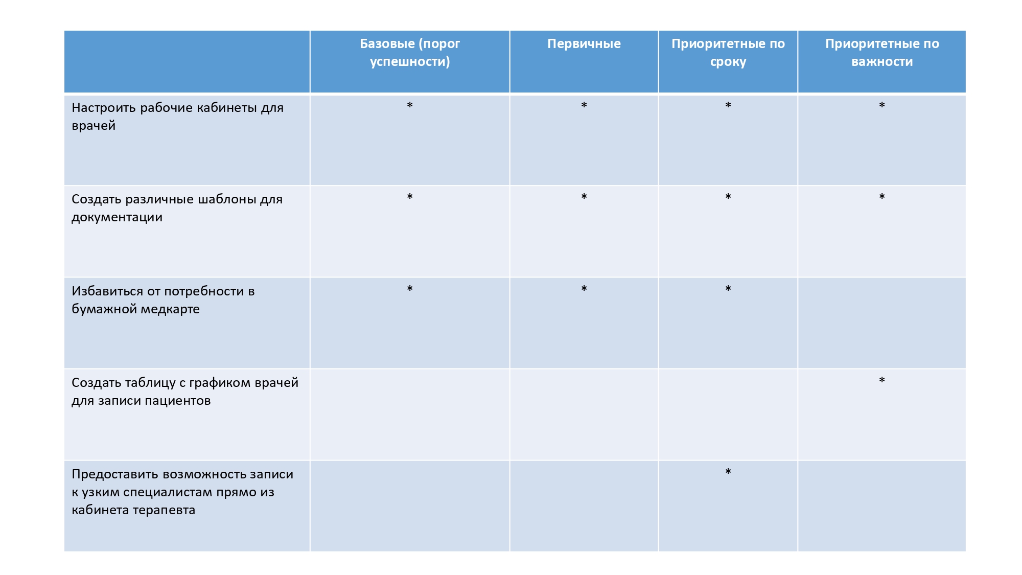 - Проанализировали потребности заказчика, собрали данные о работе медцентра, выявили достоинства и недостатки. Сверили желания руководства, сотрудников с теми пунктами, которые выделили при анализе;