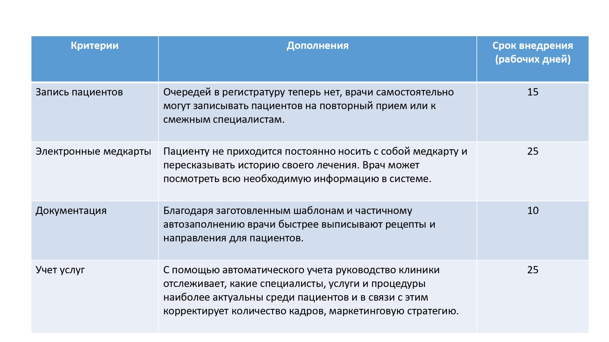 Важные критерии для медицинского центра «Медионика» при выборе исполнителя услуги по внедрению 1С: